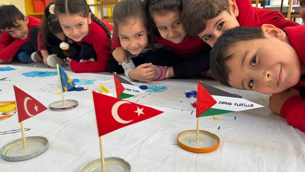 Öğretmenlerimizin rehberliğinde öğrencilerimiz ‘Nehirden denize Özgür Filistin ‘ temasıyla Filistin halkına ve küresel Sumud filosuna desteklerini etkinlikleriyle sundular. Emeği geçen tüm öğretmenlerimize ve öğrencilerimize teşekkür ediyoruz.
